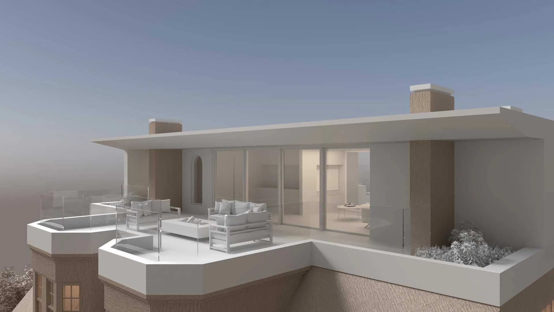 The light-touch option retained the original structure, enhancing internal spaces and incorporating partially enclosed balconies to draw in light while shielding from wind.